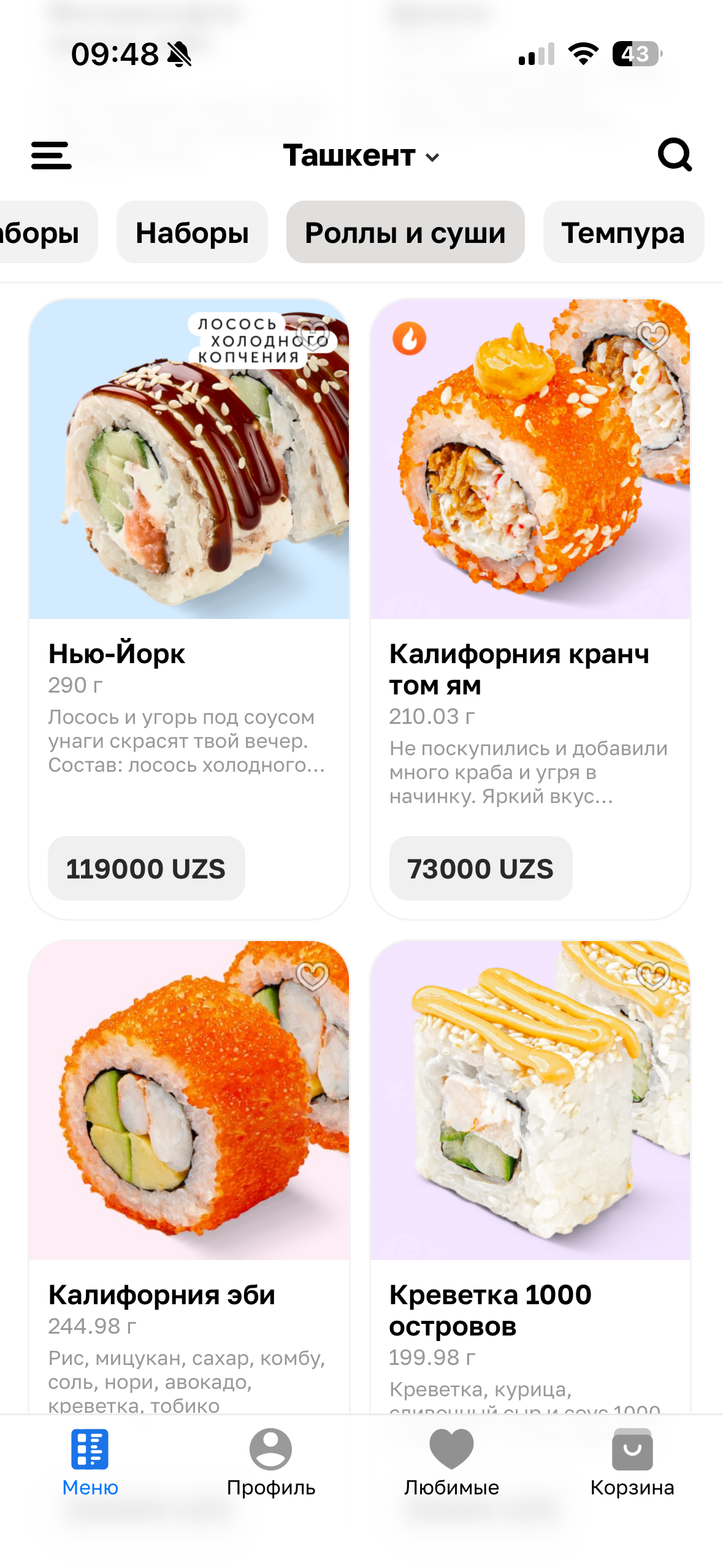 Переводится как «любить сильно» — пробуй набор для влюблённых в роллы с морепродуктами и курицей в начинке. Состав: Филадельфия лайт, Лава сяке, Яссай спайс с трюфельным соусом, Цезарь темпура, Запечённый с крабом, Краб темпура
