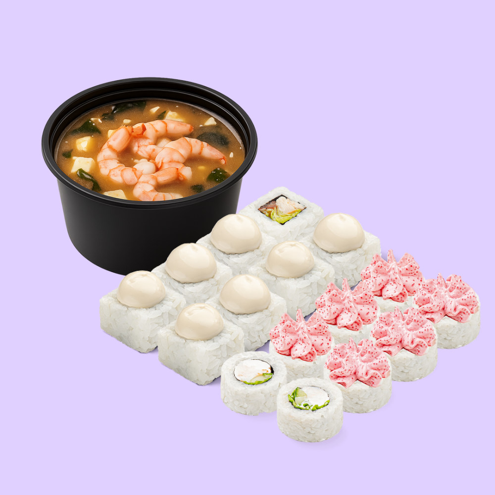 Мисо суп с креветкой, Цезарь, Лава эби