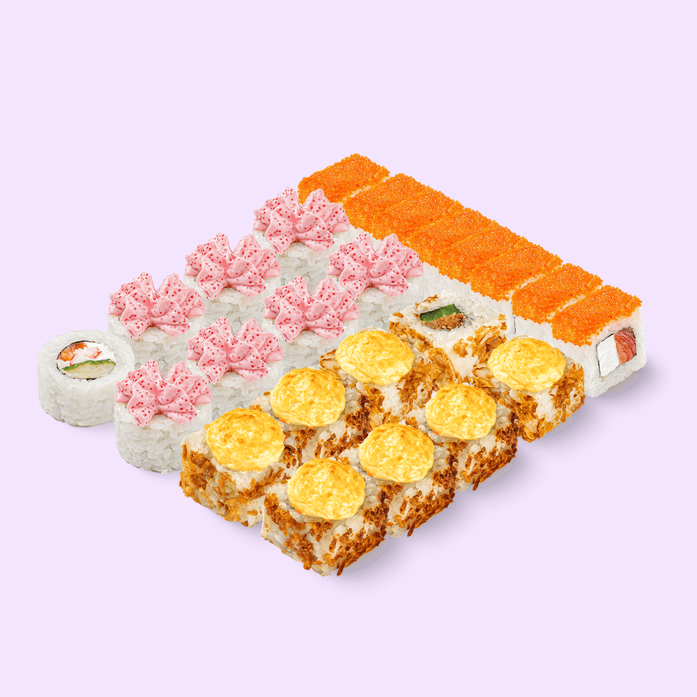 Сытый Джан для тех, кто ценит любимый сердцу вкус! Состав:Лава Сяке, Запечённый с жареным лососем, Лосось с тобико оранж