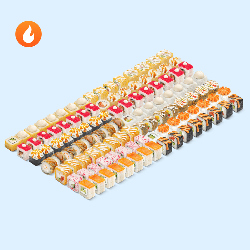 Искра между вами запылает с новой силой. Как добавить огня: понадобятся яркий манго-чили, благородный трюфель и немного лемонграсса. Раздели со второй половинкой роллы со вкусами, которые вызовут экзотический экстаз. Состав: Лосось с тобико и трюфельным соусом Х2, Филадельфия темпура с соусом лемонграсс, Цезарь, Веджи спайс с соусом манго-чили, Сяке кунсей маки, Филадельфия лайт, Каваи, Цезарь BIG с трюфельным соусом, Эби темпура с соусом лемонграсс, Краб терияки с соусом манго-чили, Цезарь темпура, Тортилья с курицей и трюфельным соусом, Яссай спайс с трюфельным соусом