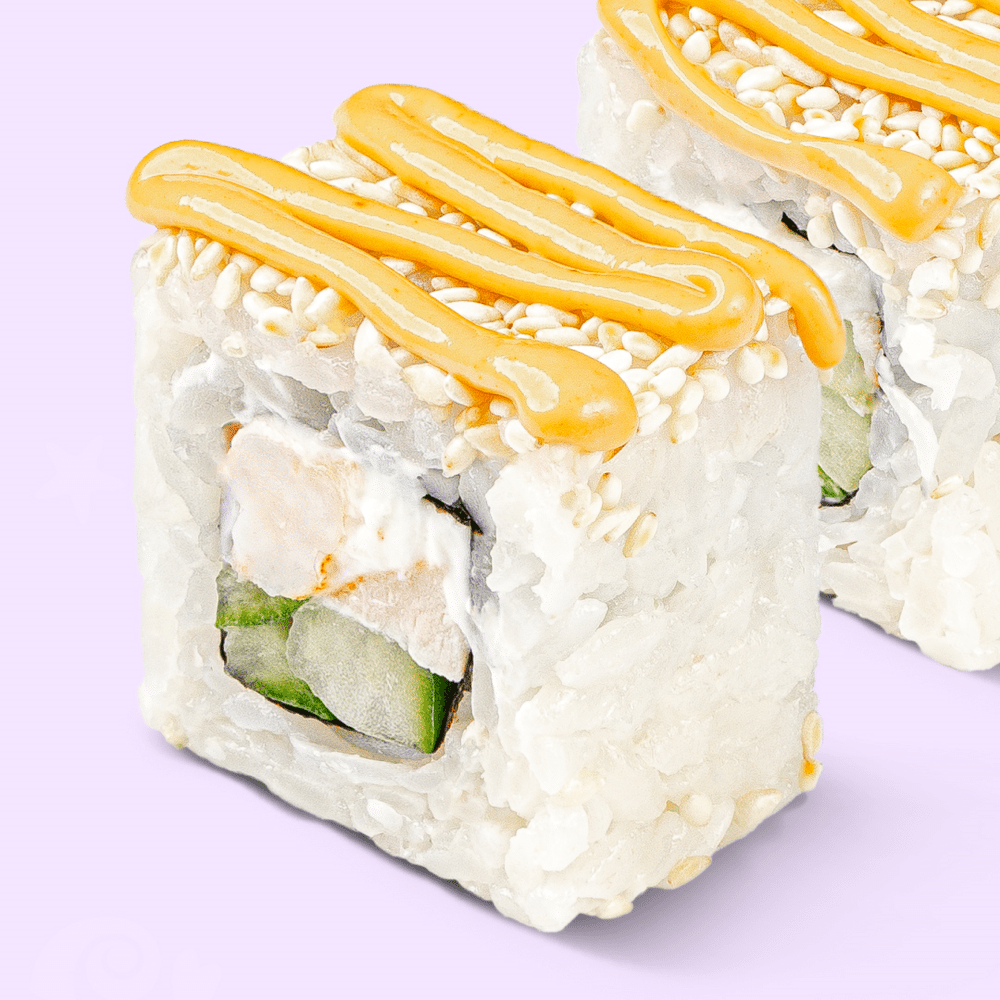 Креветка, курица, сливочный сыр и соус 1000 островов — с этим роллом твой заказ станет идеальным. Состав: креветка, курица жареная, кунжут белый, нори, огурец, рис, соус 1000 островов, сыр сливочный